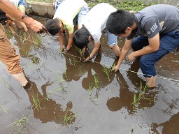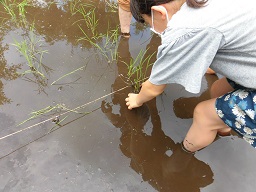 6月13日(火)農家の田中さんにご来校いただき、田植えを一緒に行っていただきました。