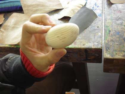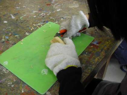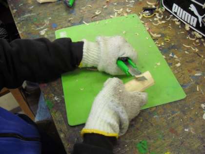 6年生の図画工作の授業の様子です。木工作「削って磨いていい形」に取り組んでいるところです。丸みが出るように木を少しずつ削っていきます。丁寧な作業が必要です。紙やすりで削って表面を整えて、それぞれの「いい形」の完成を目指します。