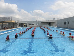子どもたちは安全指導の話を真剣に聞いていました。避難訓練も行ってから、入水しました。