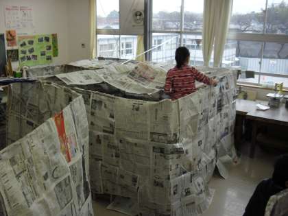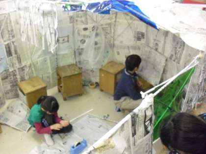 3/9 新聞紙の隠れ家づくり1(4年生)