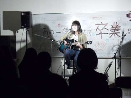 芦花中学校のアコースティックギター部の卒業ライブの様子です。中学校の音楽室で行いました。部の後輩が卒業する3年生との思い出を語りながら、それぞれに選んだ送る歌を歌っているところです。中学校の卒業式は19日に行います。