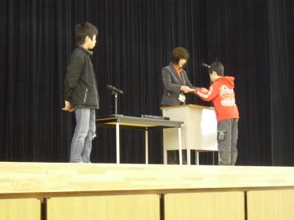 修了式後には、世田谷区のドッジボール大会に参加し、優秀な成績を収めた児童の表彰をしました。また、6年生が自主的に活動した東日本大震災の募金活動の報告がありました。募金だけでなく、鵜住居小学校の子どもたちにメッセージを送ったことも合わせて報告しました。6年生は最後まで、芦花小のリーダーとして活躍しています。