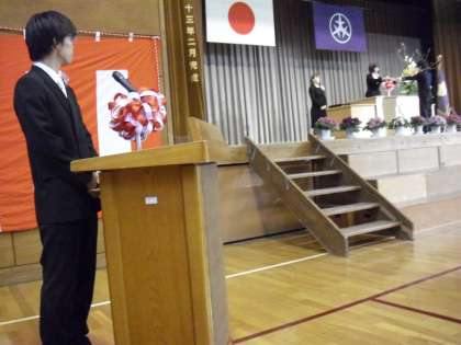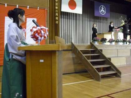 第52回卒業式の様子です。本校に様々な伝統を築いてくれた6年生が芦花小学校をす立ちます。担任が、一人一人の名前を呼びます。卒業生は、返事をした後に、将来の夢やこれからの生き方について堂々と伝えました。一人一人の表情からは、これまで積み上げてきた活動からはぐくまれた自信を感じます。