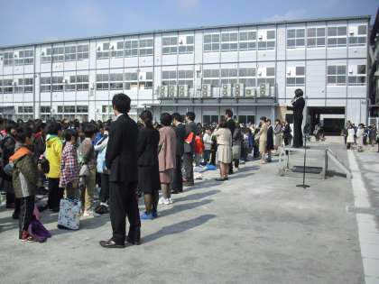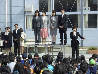芦花を去られた先生方、主事さん方を子どもたちに伝えた後、新しく芦花に来た教職員を紹介しました。新しい出会いを大切にしていきたいと思います。そして、担任発表です。渡部校長に名前を呼ばれたら「はい」と返事をして自分のクラスの前に走っていきます。これから1年間、力を合わせてがんばっていきます。