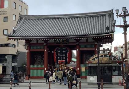 浅草では台東区ボランティアガイドさんに案内をしていただき、浅草寺や仲見世通り周辺を見学しました。見学を通して、浅草の歴史や街並み、文化財や伝統工芸品などを見て学ぶことができました。