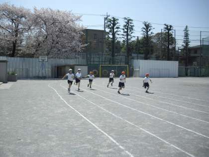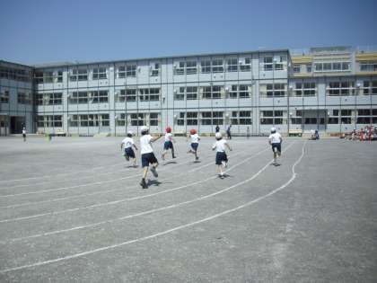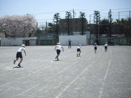 4年生の体育の授業の様子です。80mの短距離走を行っているところです。久しぶりの短距離走でしたが、力いっぱい走る友達に大きな声援を送っていました。より力強く走ることができるように自分の記録を伸ばしていきます。