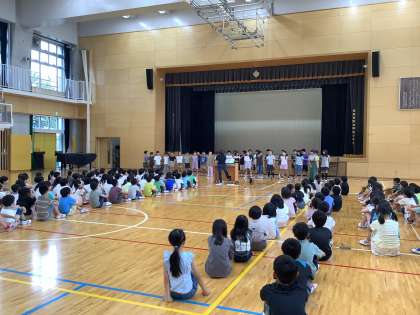 本日の6時間目に、音楽会に向けて学年集会をしました。各クラスごとに歌ったり、ワンチームになるべく円になって全員で歌ったりして、来る音楽会へと心を一つにしました。