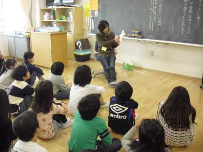 3・4年生の読み聞かせの様子です。新しい校舎は窓が多く教室も明るいつくりになっています。保護者の方と子どもたちの距離感がとてもよく、読み聞かせの雰囲気もより温かさを感じます。本への興味関心を高めるだけでなく、本校が目指すふれあい力をはぐくむ時間でもあるのです。
