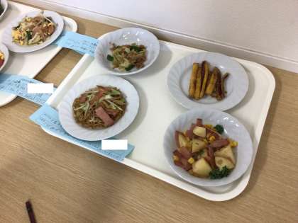 それぞれが考えたレシピで「炒めもの」を作りました。