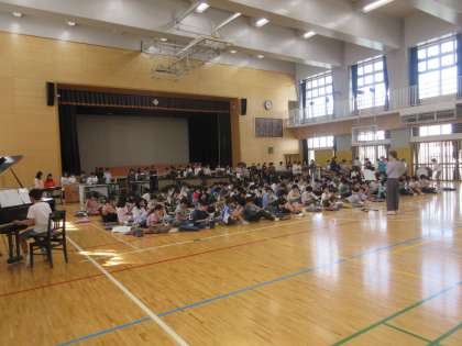 音楽会に向けて、5年生の練習が始まりました。これまで音楽の時間にそれぞれのパートで練習してきましたが全員で合わせて合奏するのは今日が初めてです。