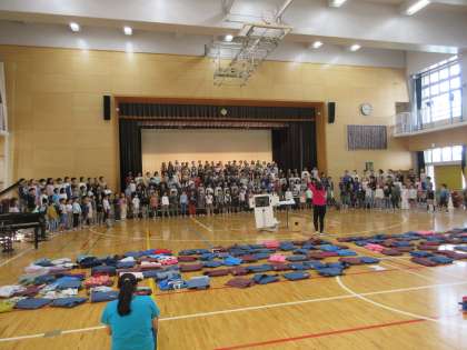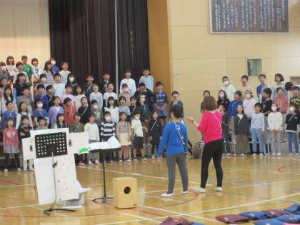 今日9日(木)の1時間目に3年生が音楽の練習を行いました。「春の小川」の歌を全体で歌ったとき、ある男の子がいい笑顔で歌っていました。そこで、みんなの前で手本となって歌ってもらいました。歌い終わると3年生のみんなから拍手が沸き起こり、体育館全体がとても温かい雰囲気に包まれました。