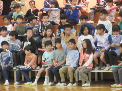 今日10日(金)の3時間目に2年生が音楽の練習をしました。2年生が合奏する「カノン」は、いくつもの音階を重ね合わせて構成されているので大人数で合わせるのが大変です。いつもは元気でパワフルなみんなが真剣な表情で頑張り、取り組んでいました。本番に乞うご期待です!