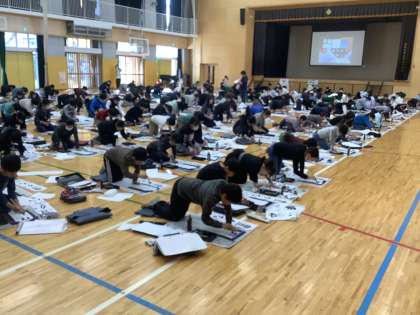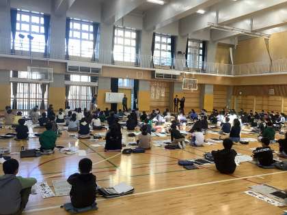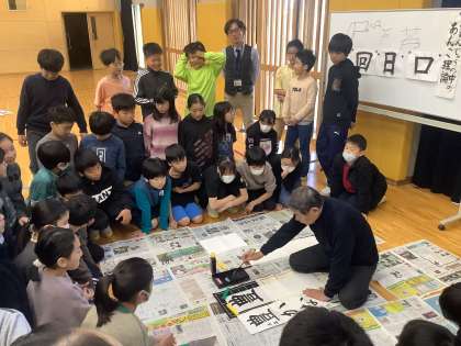 今日(12/14)の1、2時間目は東京学芸大学名誉教授長野先生にお越しいただき、書き初めの指導をしていただきました。