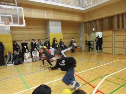 13日(土)の午後に、PTAイベント委員会による「新年親子お楽しみ会」が開催されました。今回は、久しぶりに「逃走中」を行うとあって、多数の応募あり、その中から抽選で選ばれた子どもたちが参加しました。