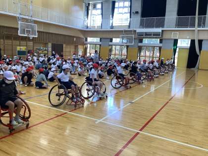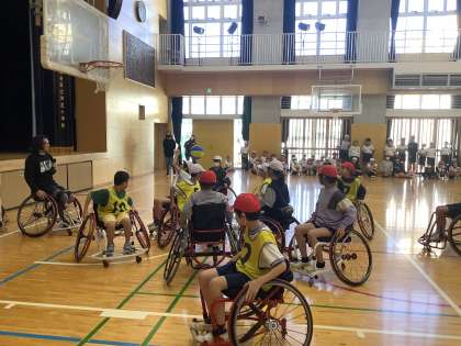 初めて乗るバスケット用車いすに四苦八苦しながらも基本的な動作を覚えることができました。