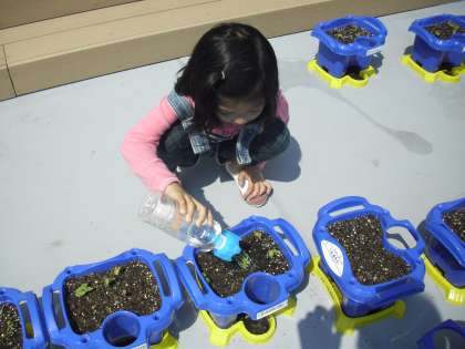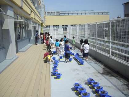 5/7 テラスで水やり(1年生)