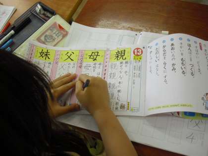 2年生の国語の授業の様子です。新出漢字の読み方や筆順を全員で確認しているところです。画数の多い漢字も増えてきた2年生。何度も何度もくり返し確認します。学校でも家庭でもくり返し取り組むことで正しい筆順の文字を身に付けることができます。