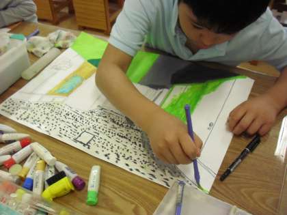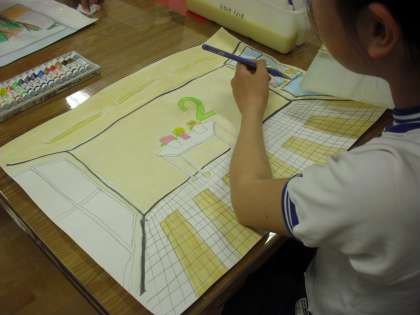6年生の図画工作の授業の様子です。各自が選んだ芦花小百景もずいぶんと進みました。もう一度、その場所に行って色を確かめながら作業を進めていたり、遠近感を採り入れながら、校舎の広さを工夫して表現したりしながら描いています。