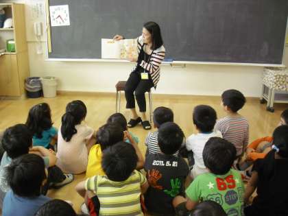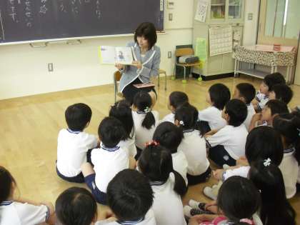 読み聞かせは、子どもたちの感性や想像力をはぐくむだけでなく、読み手と聞き手のふれあいの場でもあります。本を通して子どもたちと会話をしたり、言葉のキャッチボールをしたりすることで、コミュニケーション力をはぐくむことにもつながります。渡部校長も子どもたちと楽しい時間を過ごしました。