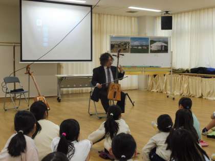 モンゴルの遊牧民の暮らしの様子をお話いただいたり、実際に馬頭琴の音を聴かせてもらったりしました。