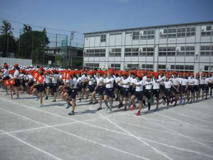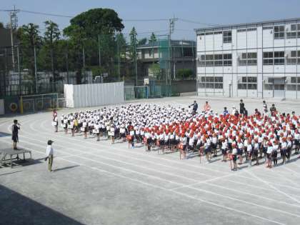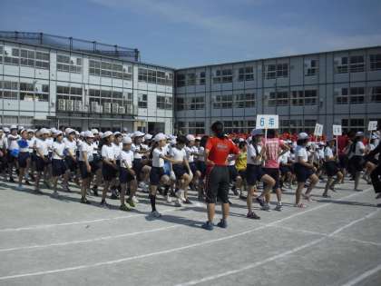 今朝の運動会全体練習の様子です。入場行進の練習をしているところです。手足を伸ばし、ひざを高く上げて行進します。全体でリズムを合わせました。「全体止まれ」の合図に合わせて止まる練習もしました。その場その場で子どもたちは力いっぱい取り組んでいます。
