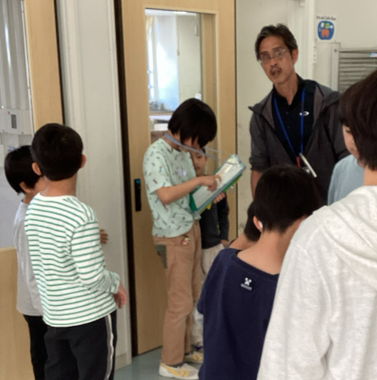 今日はひかり学級内でグループに分かれて学校を探検しました。静かに歩くことや走らないことなどルールを守り活動できました。また、芦花小学校に来たばかりの1年生や転入生に、教室の場所や何をするところか伝えることができました。1から6年生がグループになり行動する初めての機会でしたが、楽しく学習できました。