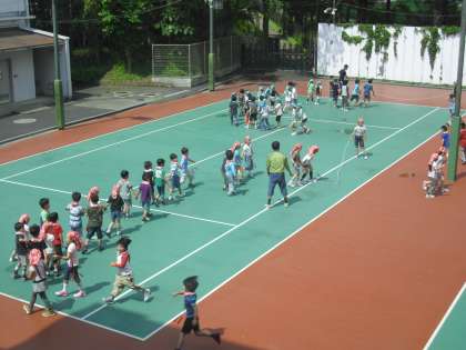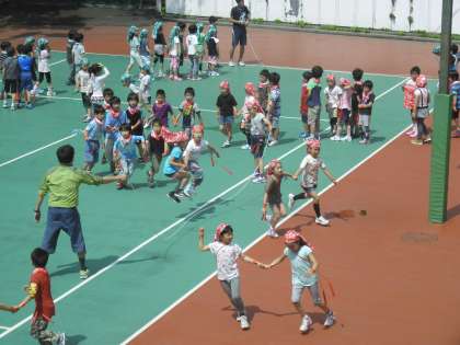 2年生の体育の授業の様子です。本校では体力向上の取り組みの一つとしてクラスでの連続長なわ跳びを行っています。2年生も昨年一年かけてリズミカルに跳ぶことができるようになりました。