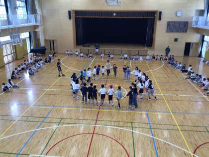 体育館で練習しました。