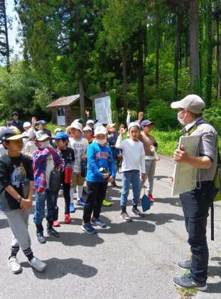 天気がとても良くなりました。なかのビレッジの周辺を散策します。ガイドさんのお話で川場村の自然について詳しく学びます。