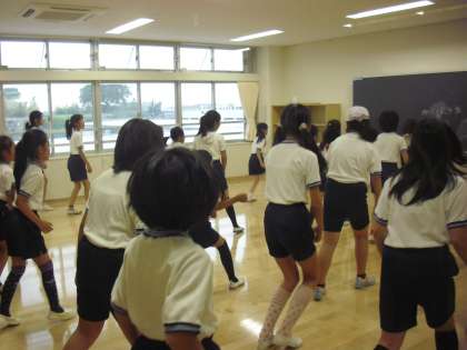 ダンスクラブは、早速振り付けの練習をしています。音楽クラブは、演奏する曲の楽譜を見ながら打ち合わせをしています。クラブ活動は異学年の集団での活動です。学年をこえて同じ興味や関心を持つ仲間とともに活動します。