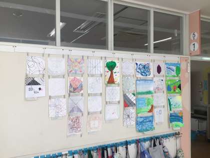 5年:図工の作品を廊下に掲示。ミニ展覧会!?