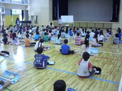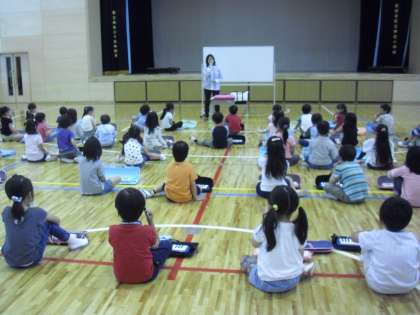 1年生の音楽の特別授業の様子です。講師の先生をお招きし、学年合同で体育館で行いました。鍵盤ハーモニカの演奏の仕方よりも、扱い方や手入れの仕方を中心とした楽器を大事に使う大切さを教えてくれました。これからの授業で生かしていきます。
