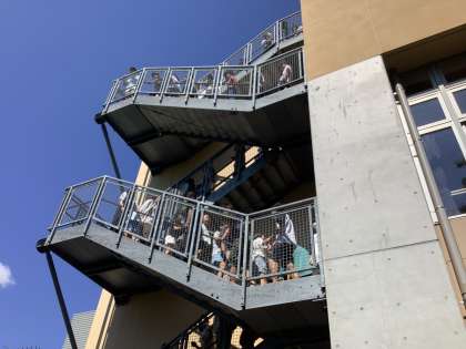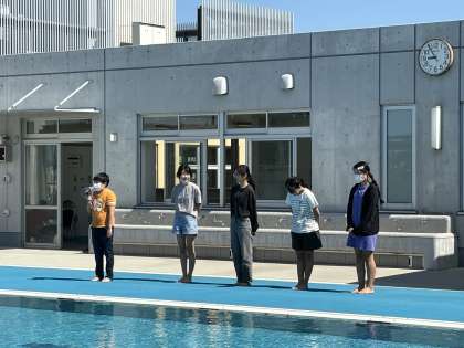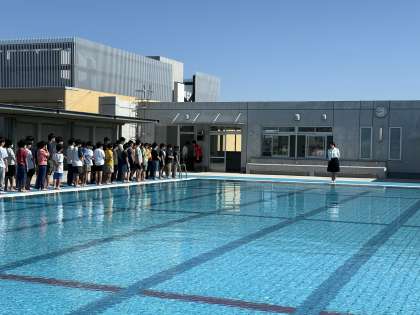 宇賀村副校長からお話をいただいたり、各クラスの代表が今年の水泳の抱負を述べたり、避難経路の確認をしました。