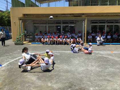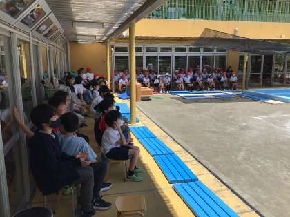 お隣の八幡山保育園の運動会練習を見学し、応援してきました。