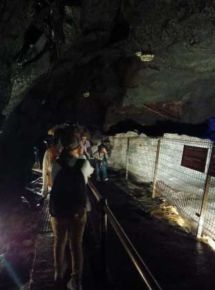 風穴に来ました。天然の冷蔵庫。寒くて深い洞窟探検でした。