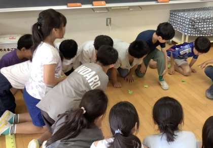 子どもたちは係活動を通して、クラスをより楽しく、みんなで仲良くできるような活動を行っています。今回は、「きせつのイベント係」が企画した「カエルまつり」を紹介します。
