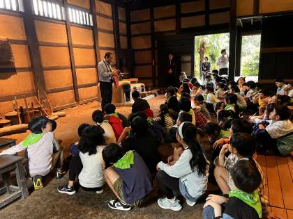 世田谷区立郷土資料館では、代官屋敷や世田谷区に古くから残る資料を見ることができました。特に、今とは形の違うアイロンやお膳を見て、驚いている様子でした。