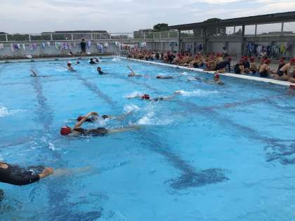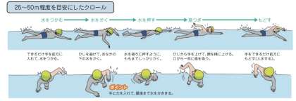 高学年の学習では、クロールや平泳ぎを続けて長く泳ぐことを学習します。