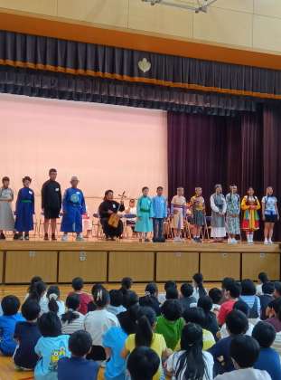 色鮮やかなモンゴルの衣装を身に着け、馬頭琴や横笛、踊りを見せていただきました。