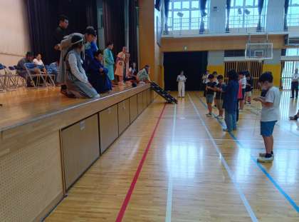 6年生からは、けん玉、お手玉、コマとおぼろ月夜の歌を披露しました。