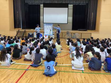 子どもたちは、真剣に話を聞き、安全に自転車に乗る気持ちを高めました。夏休みに入ると、活動の幅が広がり、自転車に乗る機会も増えるかと思います。そんな時はぜひ、今回学んだことを生かして安全に乗車して欲しいです。
