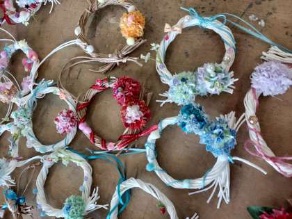 そのお花を使って、オリジナルの壁飾りを作りました。