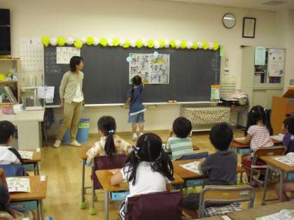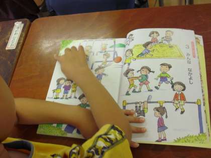 1年生の道徳の授業の様子です。道徳の副読本に描かれているのは公園で遊んでいる子どもたちの様子です。子どもたちの表情を見ると、笑っていたり、困っていたり、泣いていたり・・・。どうしてそのような表情なのかを考えながら、仲良く生活するにはどうしたらよいかを考えました。たくさんの子どもたちが自分の考えを発表しました。