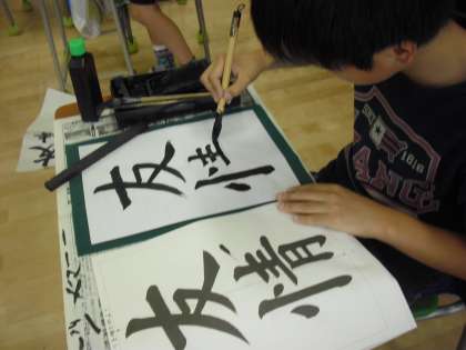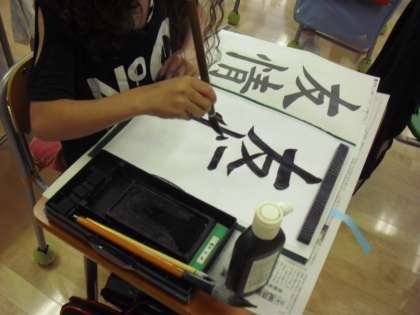 6年生の国語の書写の授業の様子です。課題文字「友情」に取り組んでいるところです。用紙全体と文字の大きさとの関係に注意しながら書き進めます。これからも様々な活動を通して「友情」を深めていってほしいと思います。
