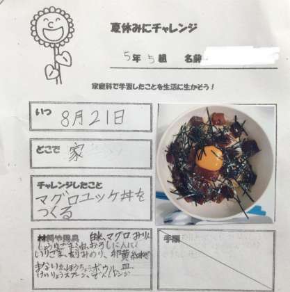 夏休みの課題として、家庭科から「夏休みにチャレンジ」が出されていました。