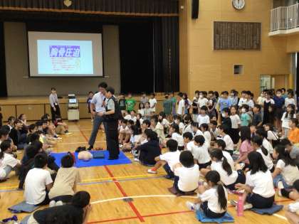命をつなぐための道具AEDや胸骨圧迫について学びました。