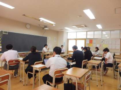 授業を参観した後には、小中の教員が集まって授業についての意見交流を行いました。