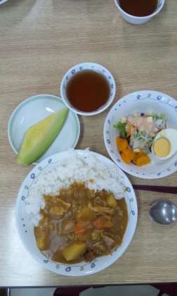 夕飯はカレーとサラダとメロンです。おかわりをして食べました。とっても美味しかったです。