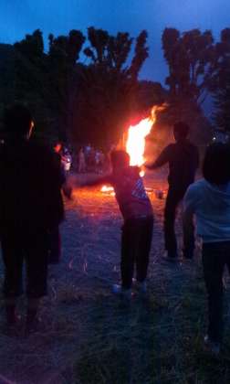 学校が違っても、火を囲んで集い親しい仲間になれた気がしました。