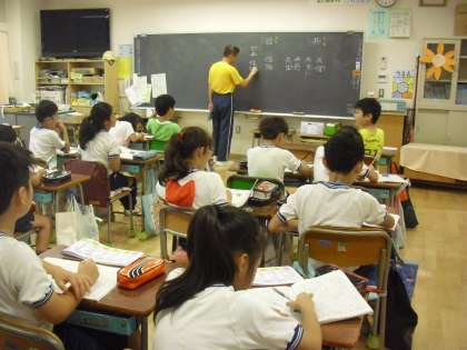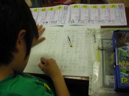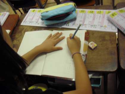 4年生の国語の授業の様子です。新出漢字を学習しているところです。漢字の意味や、新出漢字を使った知っている熟語等をみんなで出し合い、一文字一文字、筆順を確認しながら進めています。その学年で学習する漢字はその学年で身に付けます。